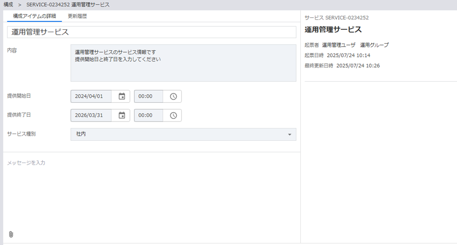- 構成アイテム情報の更新が可能です