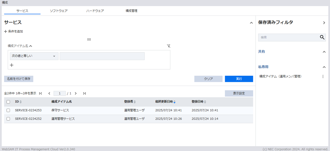 - 一覧上の各行をクリックすると構成アイテム詳細画面へ遷移します