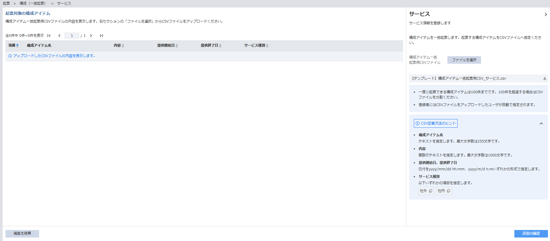 - CSV記載方法のヒントが確認できます