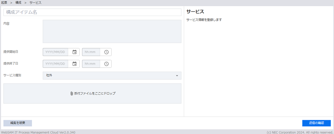 - 構成アイテムの起票が可能です