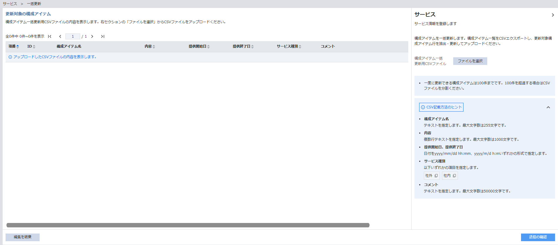 - CSVファイルを利用した構成アイテムの一括更新操作が可能です