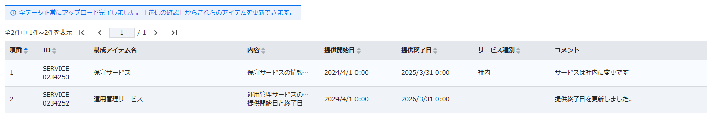 更新したい構成アイテムの情報をCSVに記載のうえ、構成アイテムを一括で更新してください。