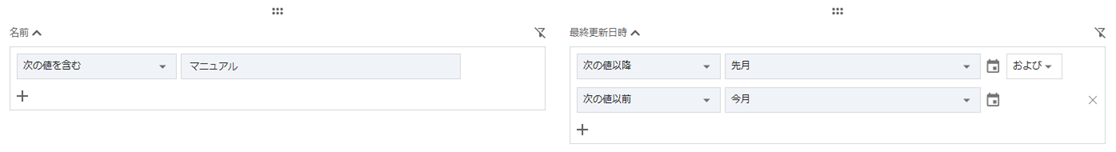 検索したい条件と検索したい任意の値をそれぞれ選択します。
