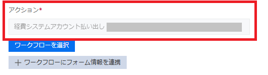 フォームの申請フィールド情報(添付ファイルを除く)をワークフローで利用したい場合は、「ワークフローにフォーム情報を連携」から対象フィールド情報を指定します。