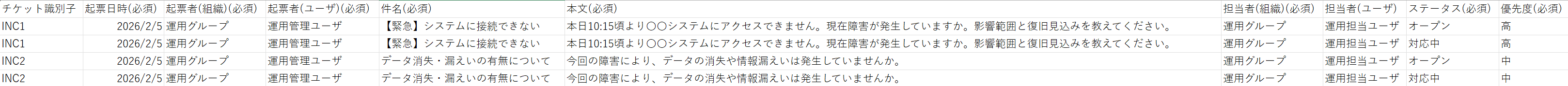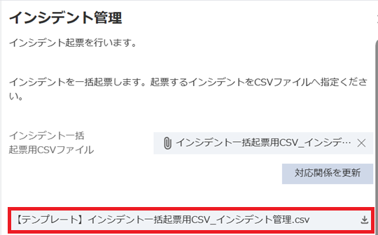 インシデント一括起票用のテンプレートをダウンロードする