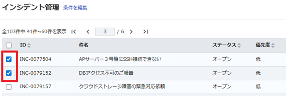 - インシデント一覧画面に表示されている列に加え、インシデント起票時に指定した本文とカスタムフィールドがエクスポートされます