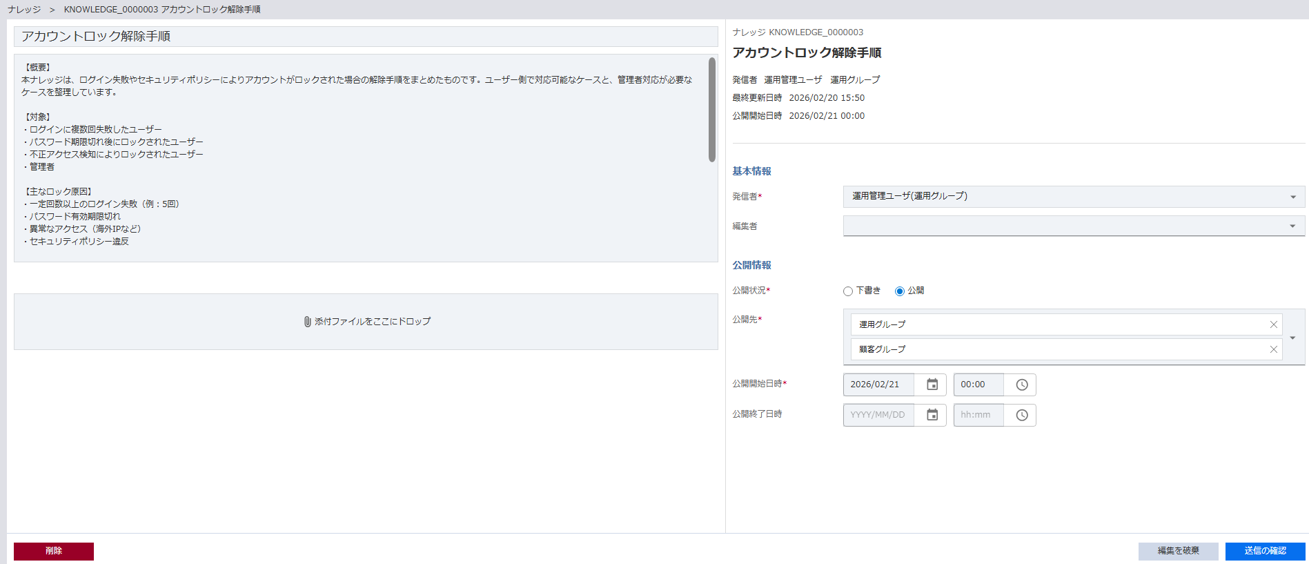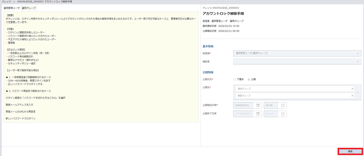 - ナレッジ一覧画面から対象のナレッジにアクセスします。