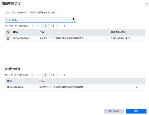 実務者向けリクエスト管理リクエストに関連チケットを紐づけたいこのページの見出しリクエストに関連チケットを紐づけたい 概要 本章ではリクエストに関連チケットを紐づける方法をご紹介します。 備考リクエスト管理機能のご利用には、Professionalプランのご契約が必要です。
