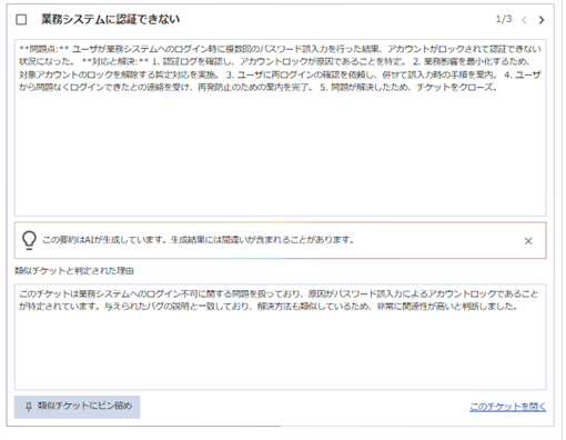 AI機能有効化前にクローズしたインシデントは夜間バッチで自動登録されるため、翌日以降に表示されます。