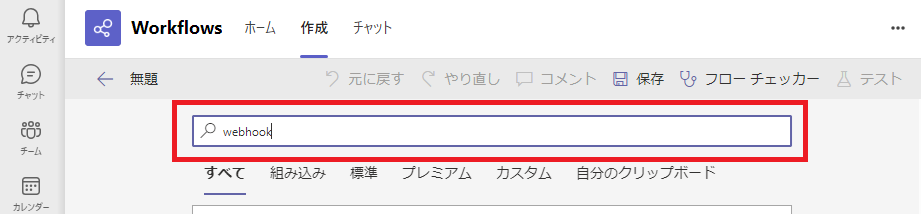検索ボックスに「Webhook」と入力します