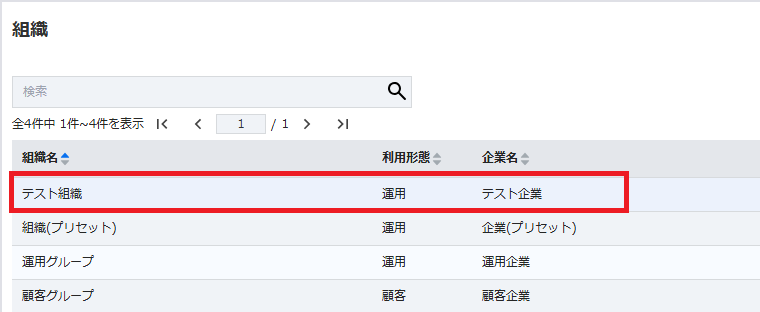 - 組織一覧画面で、有効化対象の運用組織名をクリックします。