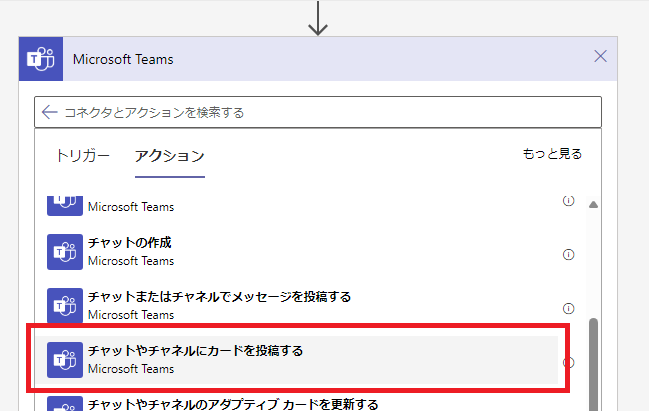 「チャットまたはチャネルにカードを投稿する」をクリックします