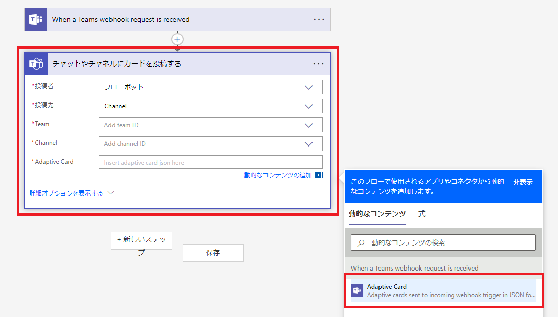 - 「Adaptive Card」に「Adaptive Card」を選択する