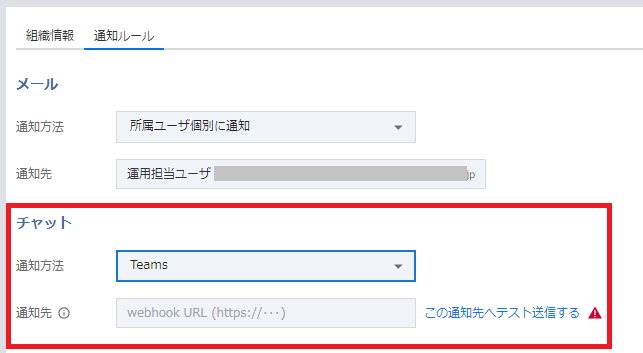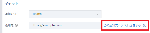 - 「この通知先へテスト送信する」をクリックし、指定したチャネルにテストメッセージが送信されることを確認します。