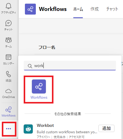 Teamsクライアントから Workflows を 開きます