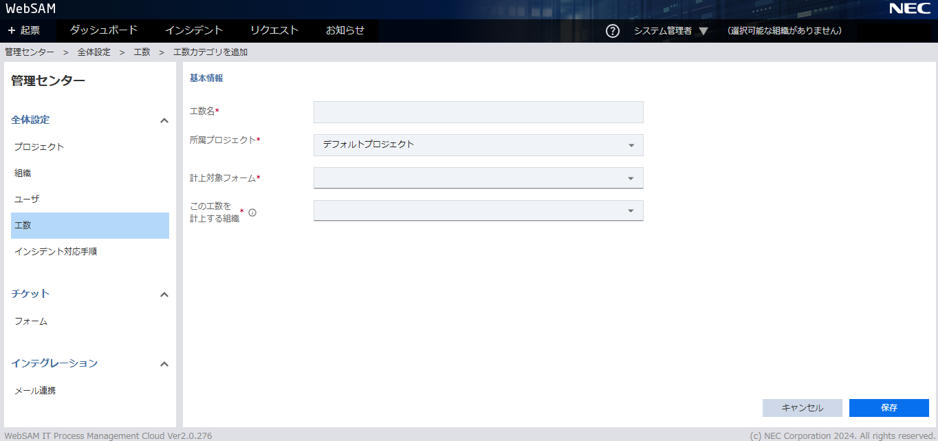 | この工数を計上する組織 | 登録した工数カテゴリを利用できる組織を指定します。複数の組織が指定可能です | 〇 |