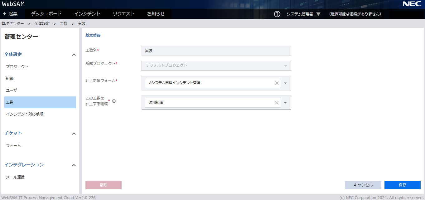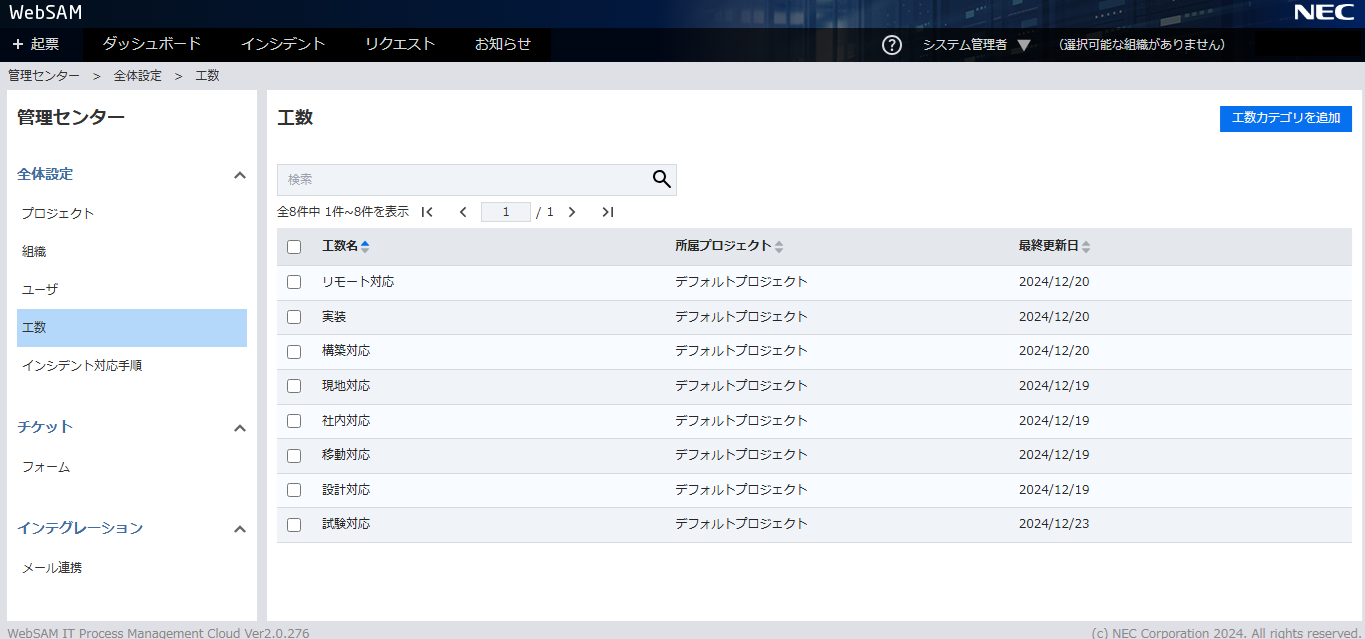 管理センター > 全体設定 > 工数 に含まれる以下画面で何ができるかご紹介します